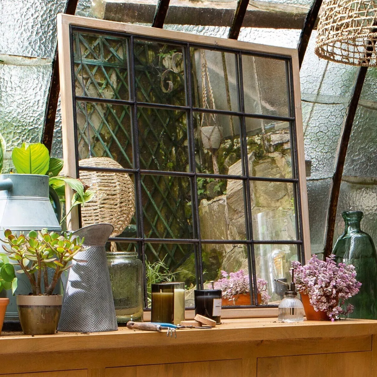 Votre salle de séjour manque de lumière ? Placé dans un angle, près d’une fenêtre, le miroir « Noe » sublimera votre espace en toute élégance. Avec son style verrière vintage, il ajoutera une discrète tonalité lumineuse à votre intérieur. Il se caractérise par un cadre en bois entourant un grillage métallique, accompagné d’un dos en fibres de bois.