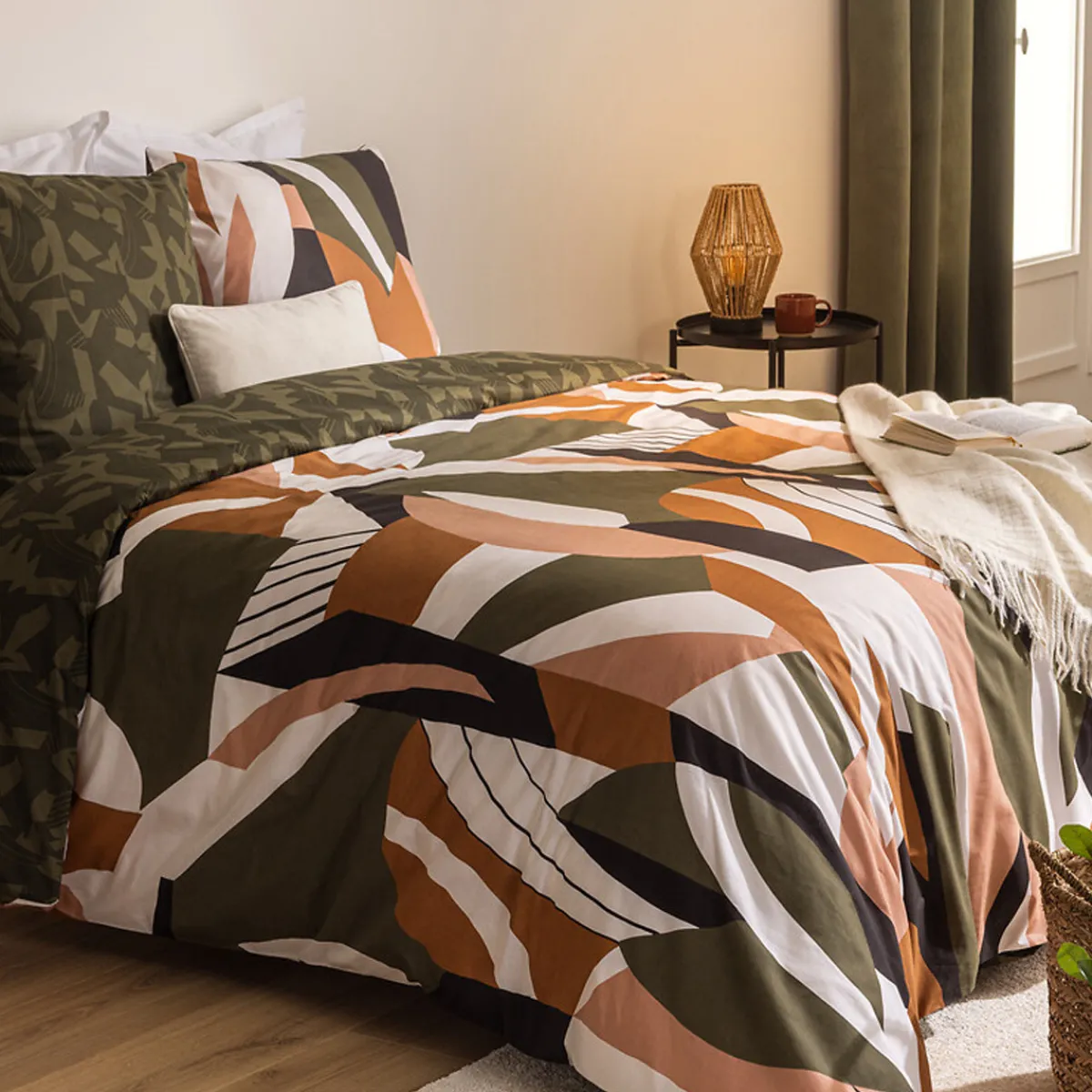 Passez une bonne nuit de sommeil en vous lovant dans cette parure de lit « Arik » deux personnes. Elle est composée d’une housse de couette réversible 2 personnes et de 2 taies d’oreiller carrées. En coton tissé 57 fils, dotée d’une fermeture à boutons, la parure de lit « Arik » conjugue confort et durabilité.