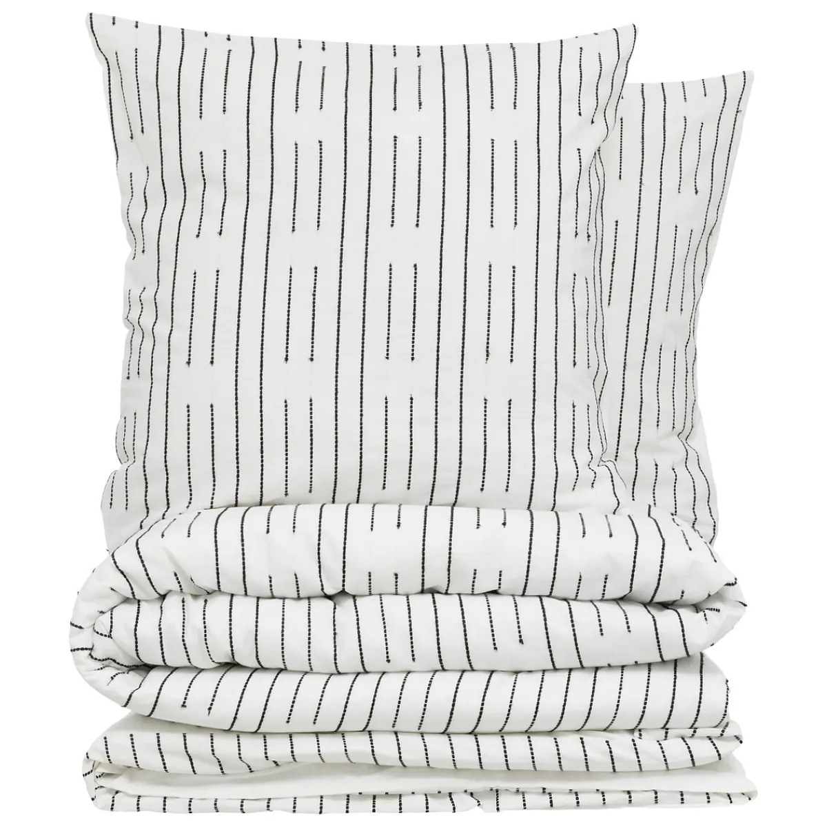 Conçue pour un grand lit deux personnes, la parure de lit « Kain » comprend une housse de couette et deux taies carrées. Elle est réalisée en 100% coton et se nettoiera très facilement en machine. De plus, elle possède un décor neutre pour se marier sans effort à votre chambre à coucher.
