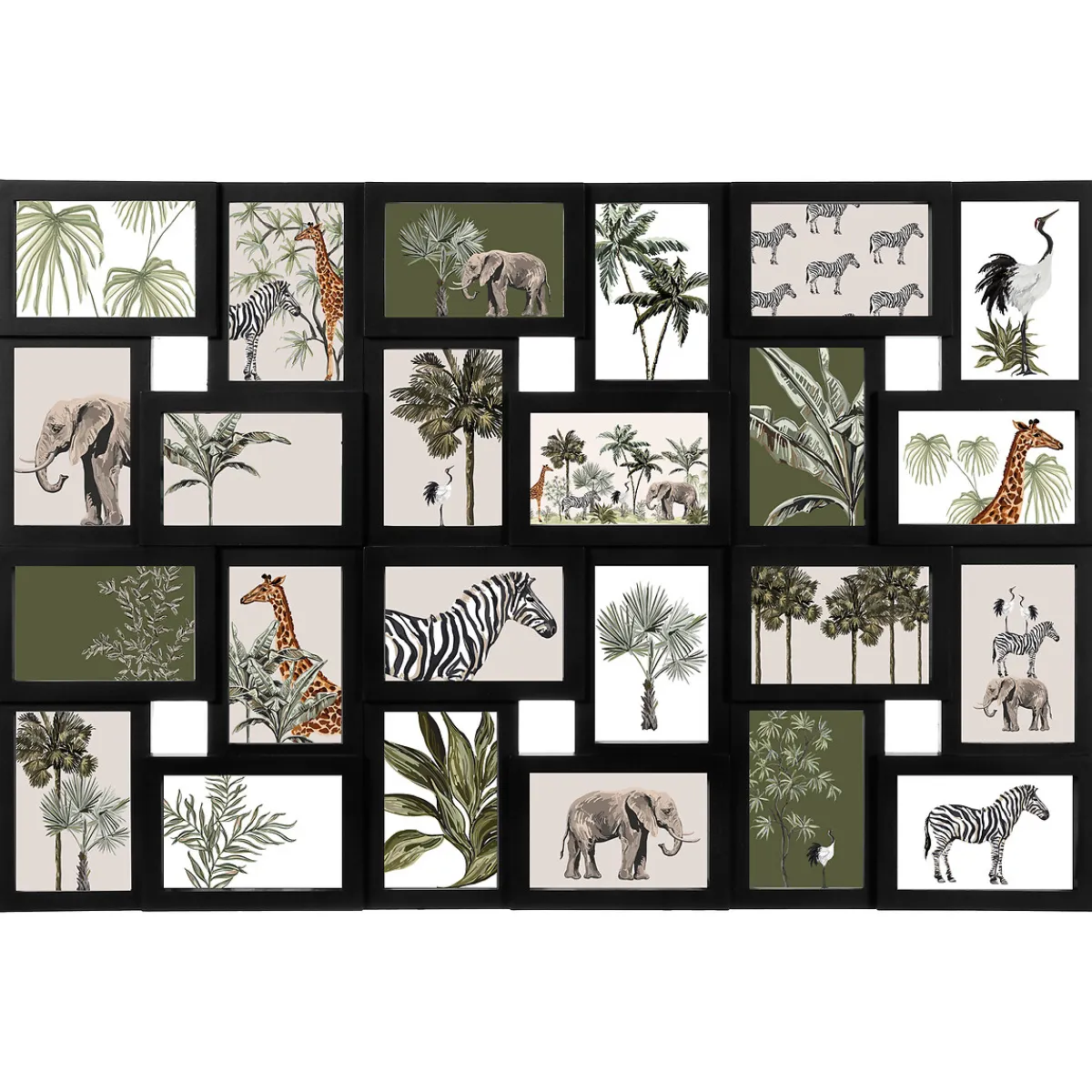 Ce grand cadre photo pêle-mêle est composé de vingt-quatre emplacements de taille standard. Il vous permettra d’afficher de nombreux souvenirs, soit verticalement, soit horizontalement. Le design simple et épuré du Pêle-mêle, 24 photos, noir sublimera vos clichés et habillera à merveille un mur. De plus, il pourra s’intégrer dans tous types de décors.