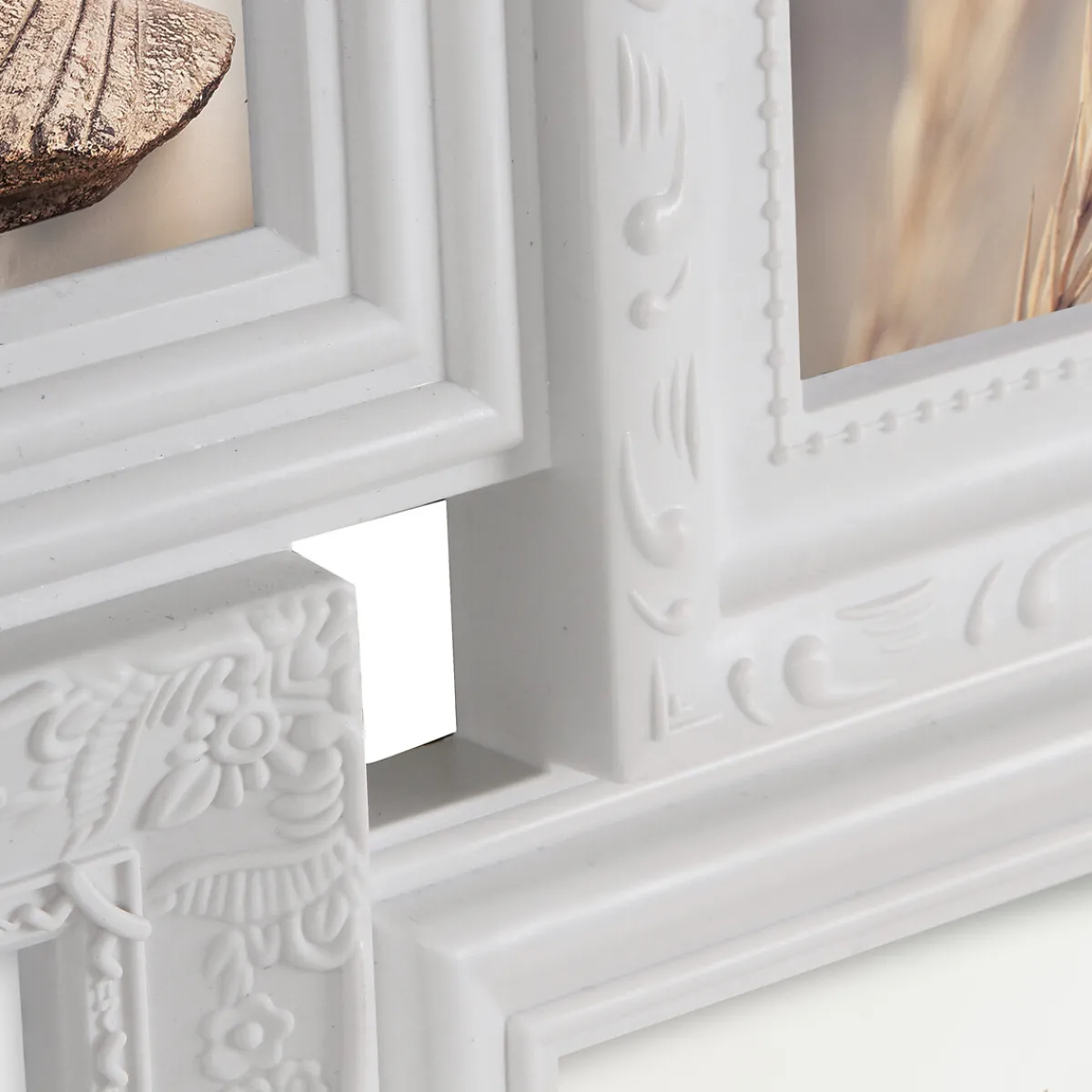 Ce pêle-mêle « suzy » est composé de 18 cadres vitrés qui présentent des moulures imitant le bois et décorées de motifs différents. Très bucolique, il vous permettra de réaliser une grande composition avec vos photos favorites ou avec des cartes fleuries et des citations. Large de 100 cm, ce pêle-mêle habillera volontiers un grand mur et produira un effet chaleureux!