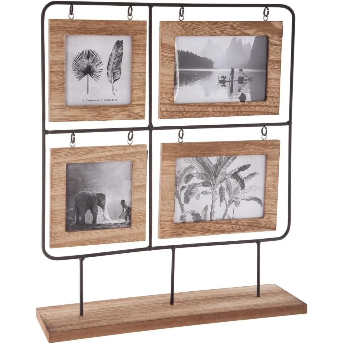 Confectionné en fer et en bois pour la touche naturelle, ce pêle-mêle pourra recevoir jusqu’à huit photos dans ses quatre cadres recto verso. Rassemblez vos plus beaux clichés, et changez d’images en retournant simplement les cadres. De taille compacte, le pêle-mêle « Nomad » pourra être posé sur une étagère, sur un bureau ou sur une commode.