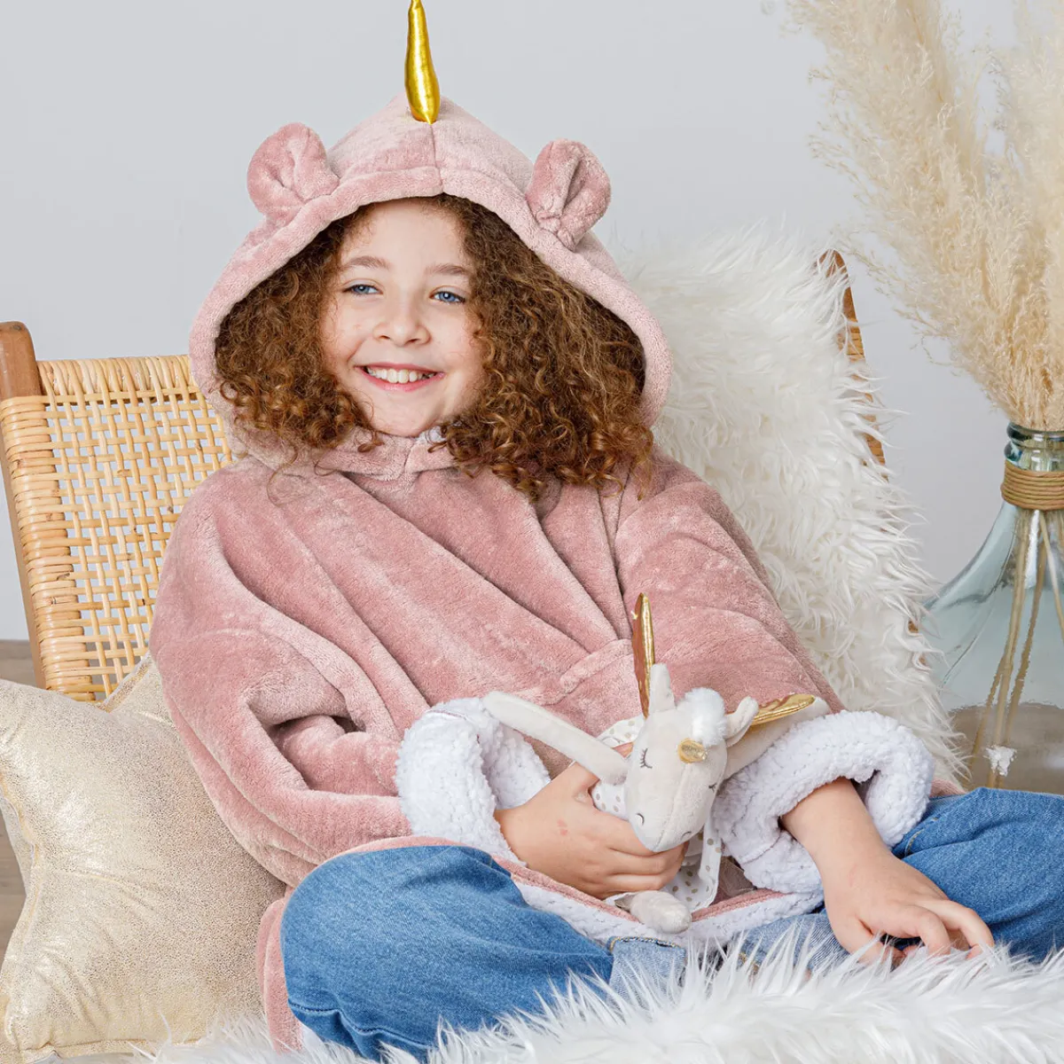 Bien couvrant, le plaid à manches à capuche pour enfant s’habille de flanelle douce avec couleur au modèle et se double de maille polaire pour plus de confort. Doté d’une grande poche kangourou et de manches longues à revers, ce pull couverture est proposé en taille unique.