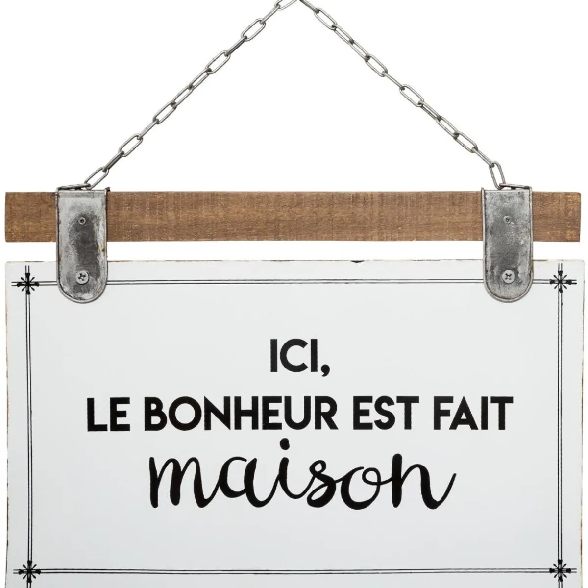 Cette grande plaque « Kolia » est réalisée en métal émaillé et vieilli et se décline dans plusieurs modèles de citations. Suspendue à une barre en bois de pin par des attaches en métal, elle offre des dimensions généreuses de 35 cm x 25 cm. L’ensemble se fixe grâce à une chaînette et trouvera sa place dans une cuisine comme dans une pièce de vie.
