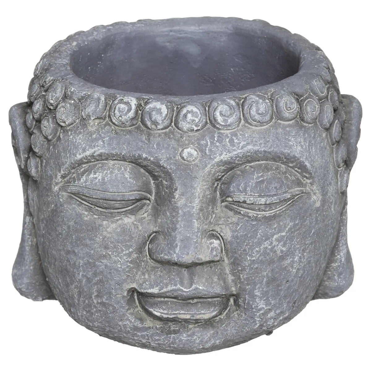 Très original, ce cache-pot en ciment est en forme de tête de Bouddha avec les yeux clos. Cette décoration de caractère embellira une petite plante grasse ou un cactus. L’aspect brut et artisanal du vase illuminera un salon, une entrée ou un balcon.