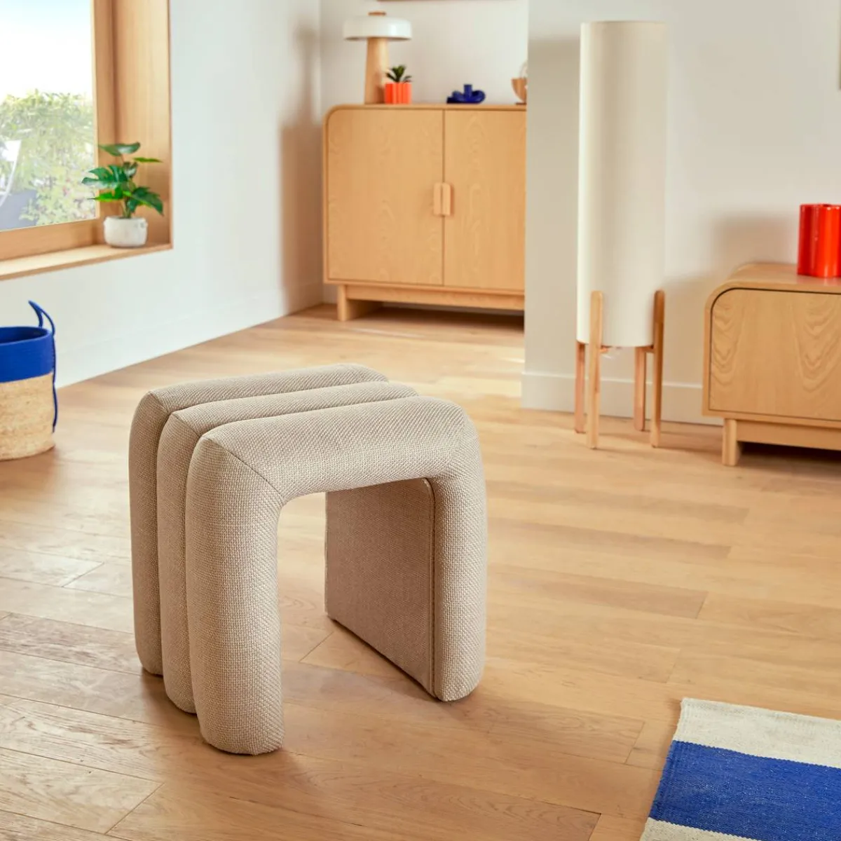 Il prend la forme de trois arches bien rembourrées et confortables. Le pouf Sisco bénéficie d’un tissu certifié Oeko-Tex® qui garantit sa bonne résistance. Dans votre salon, disposez-le autour d’une table basse en métal Atmosphera et profitez d’une ambiance contemporaine accueillante.