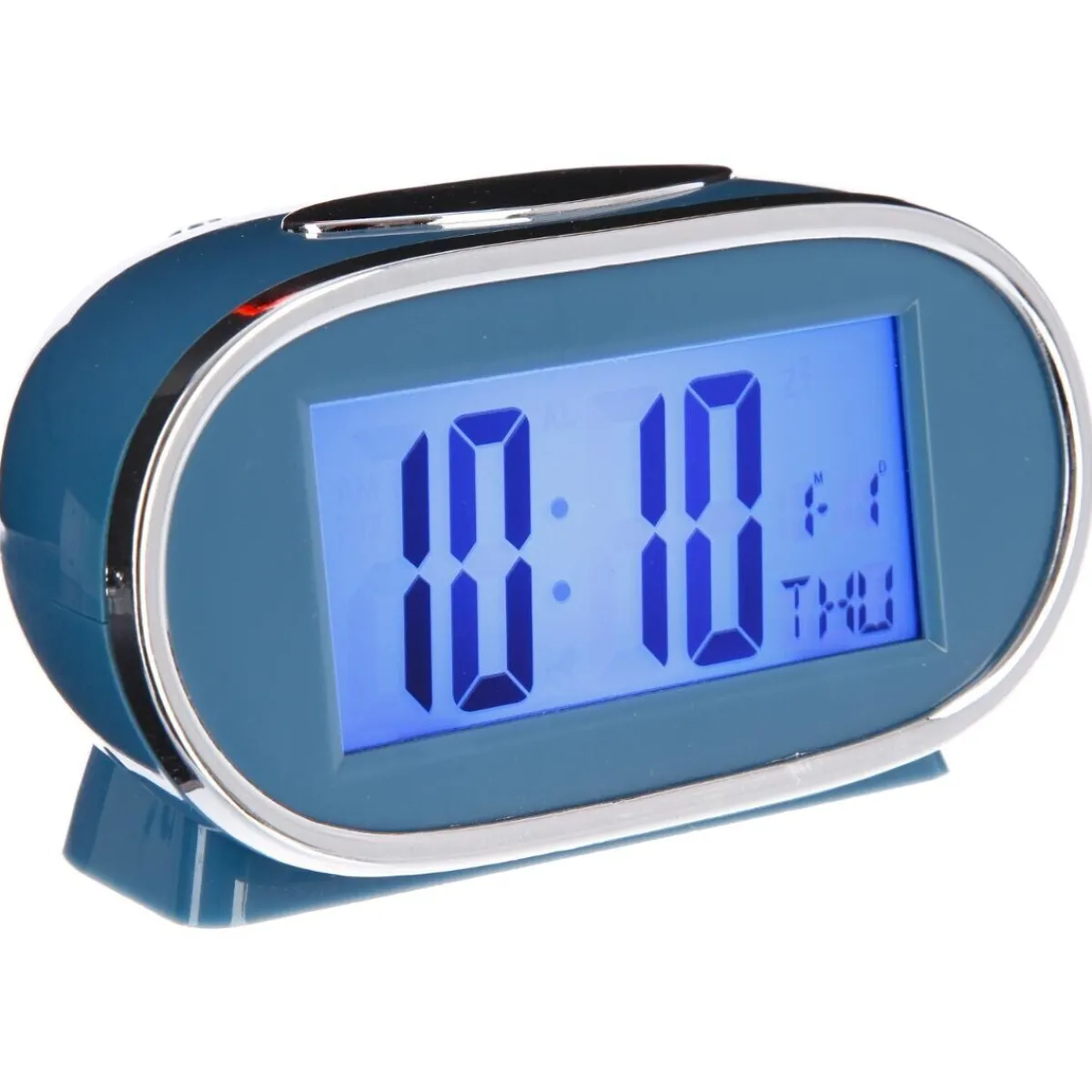 Ce réveil ovale marche avec des piles et peut ainsi se placer n’importe où. Il affiche l’heure, la date et a une fonction alarme. L’écran LCD vous permettra de lire les chiffres facilement, même quand il fait sombre grâce au rétroéclairage. De plus, le grand bouton sur le dessus sert à l’éteindre rapidement quand la sonnerie retentit.