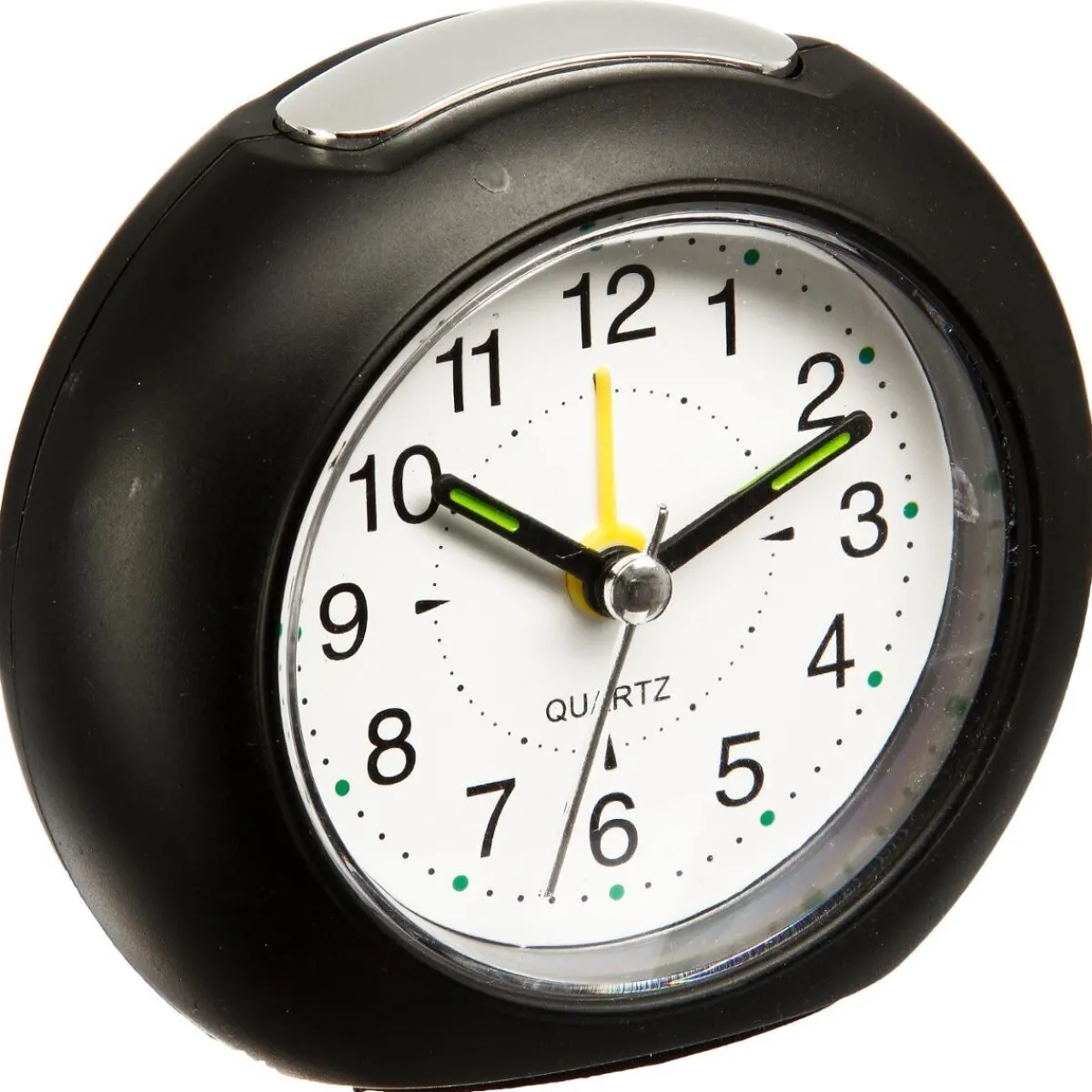 Ce réveil rond vous accompagnera partout, car il fonctionne avec des piles. Ses lignes contemporaines et sobres s’adapteront sans mal à votre intérieur. Le cadran à gros chiffres, les aiguilles fluorescentes et le rétroéclairage vous donneront l’heure même la nuit. Le grand bouton sur le haut vous permettra d’éteindre la sonnerie très facilement.