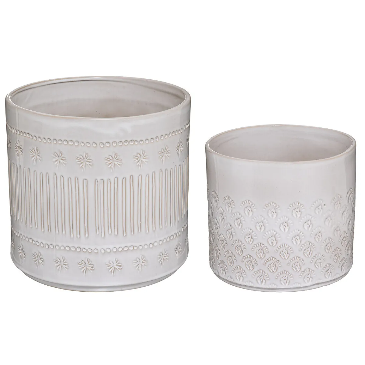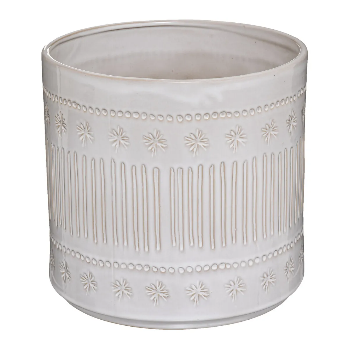 Installez vos pots en céramique « Carmen » près d’une lampe en bois et coton ou à côté d’un fauteuil en rotin Atmosphera.
