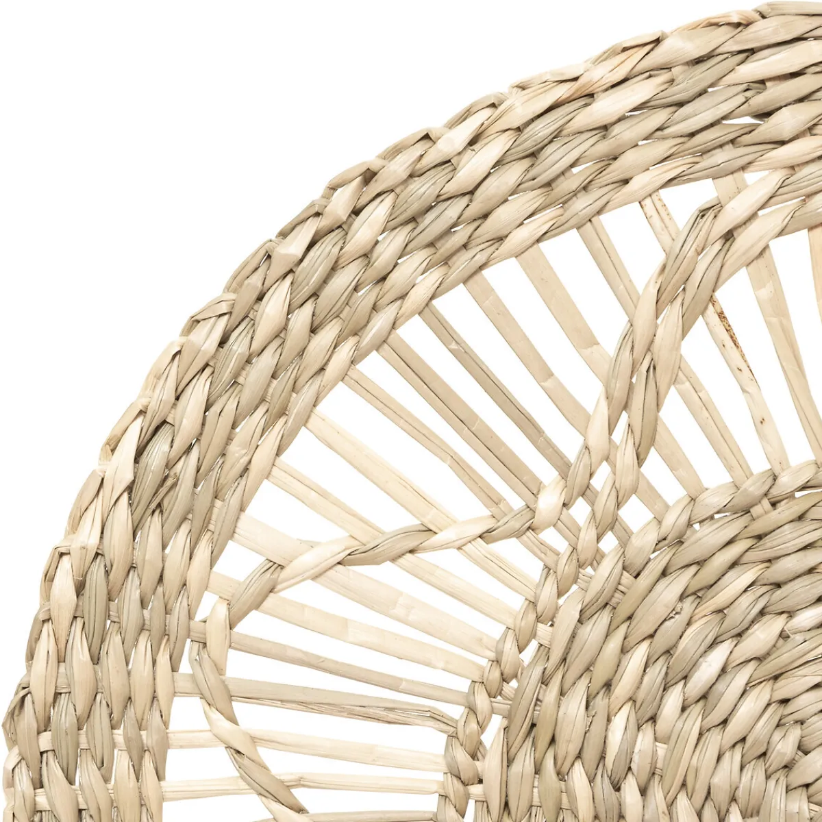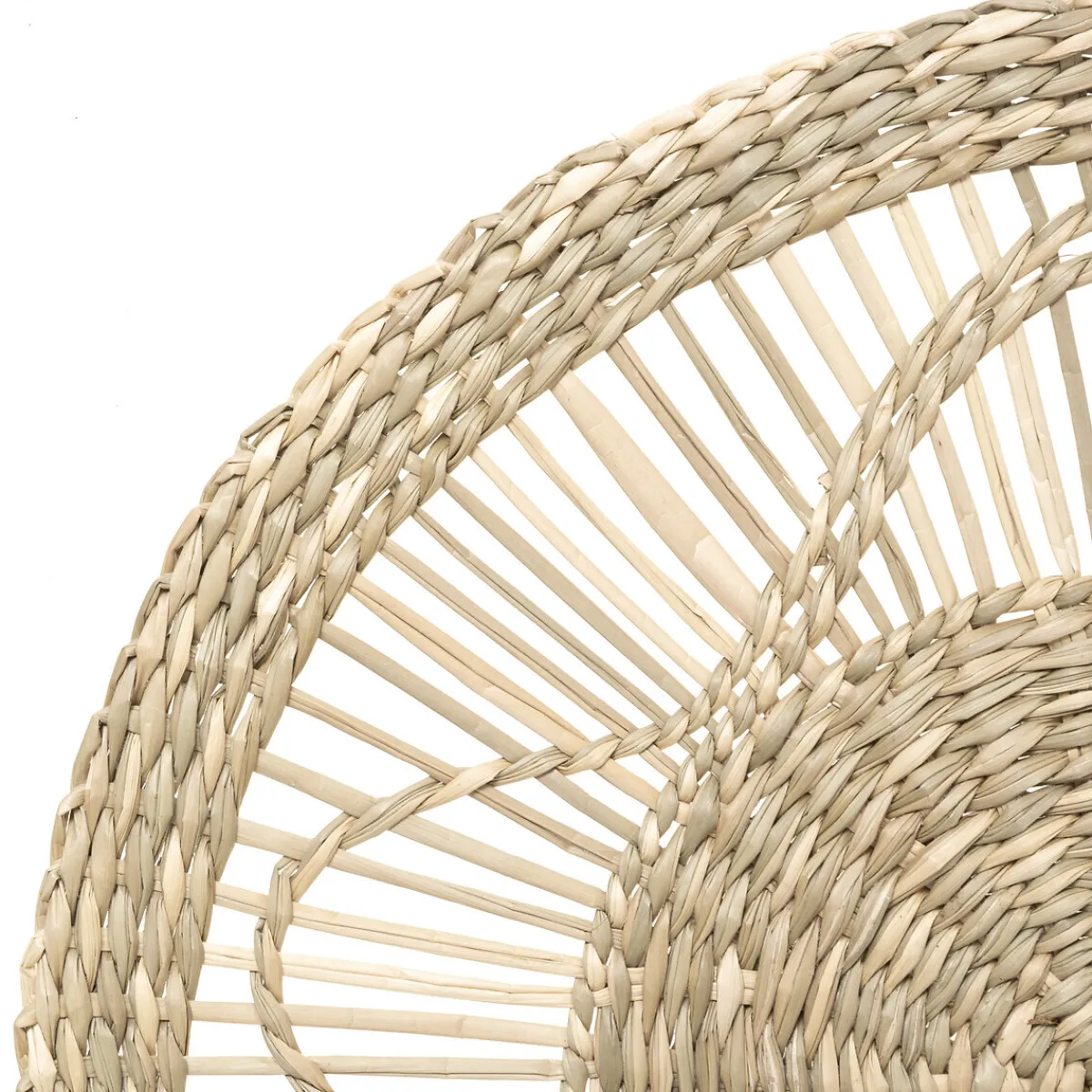 Cette déco murale seagrass a été conçue en roseau ce qui lui confère beaucoup de caractère. Au nombre de 3, ces décorations murales présentent des diamètres différents de 18 cm, 28 cm et 38 cm. Disposez-les harmonieusement en quinconce, les unes au dessus des autres ou en enfilade horizontale. À vous de voir selon vos goûts.