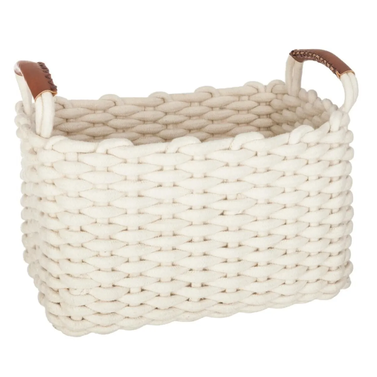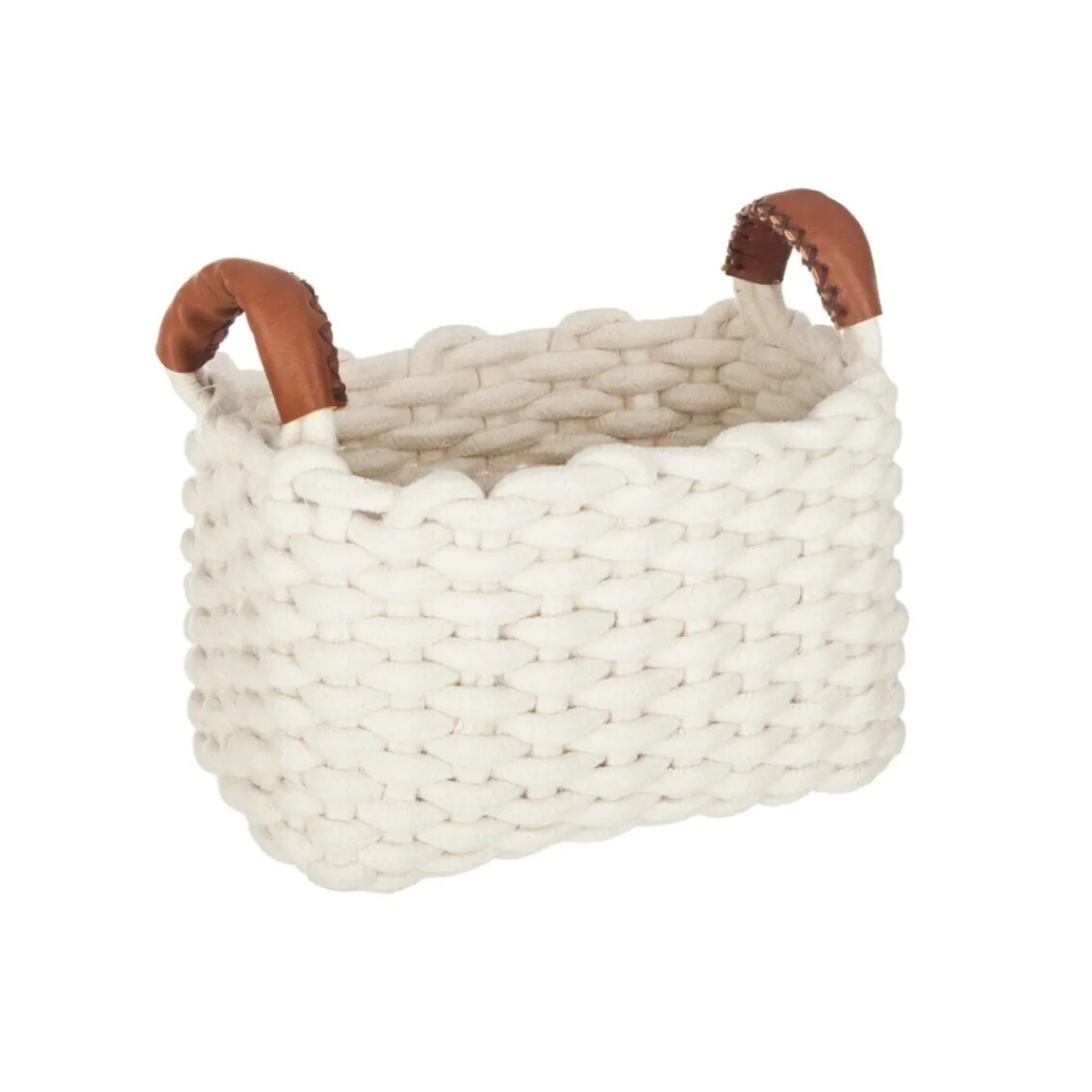 Ces accessoires rectangulaires empruntent aux paniers artisanaux leur charme tout en y apportant une touche contemporaine. Ils sont parfaits pour ranger les affaires de toilette de bébé, les produits de beauté, les petites serviettes…