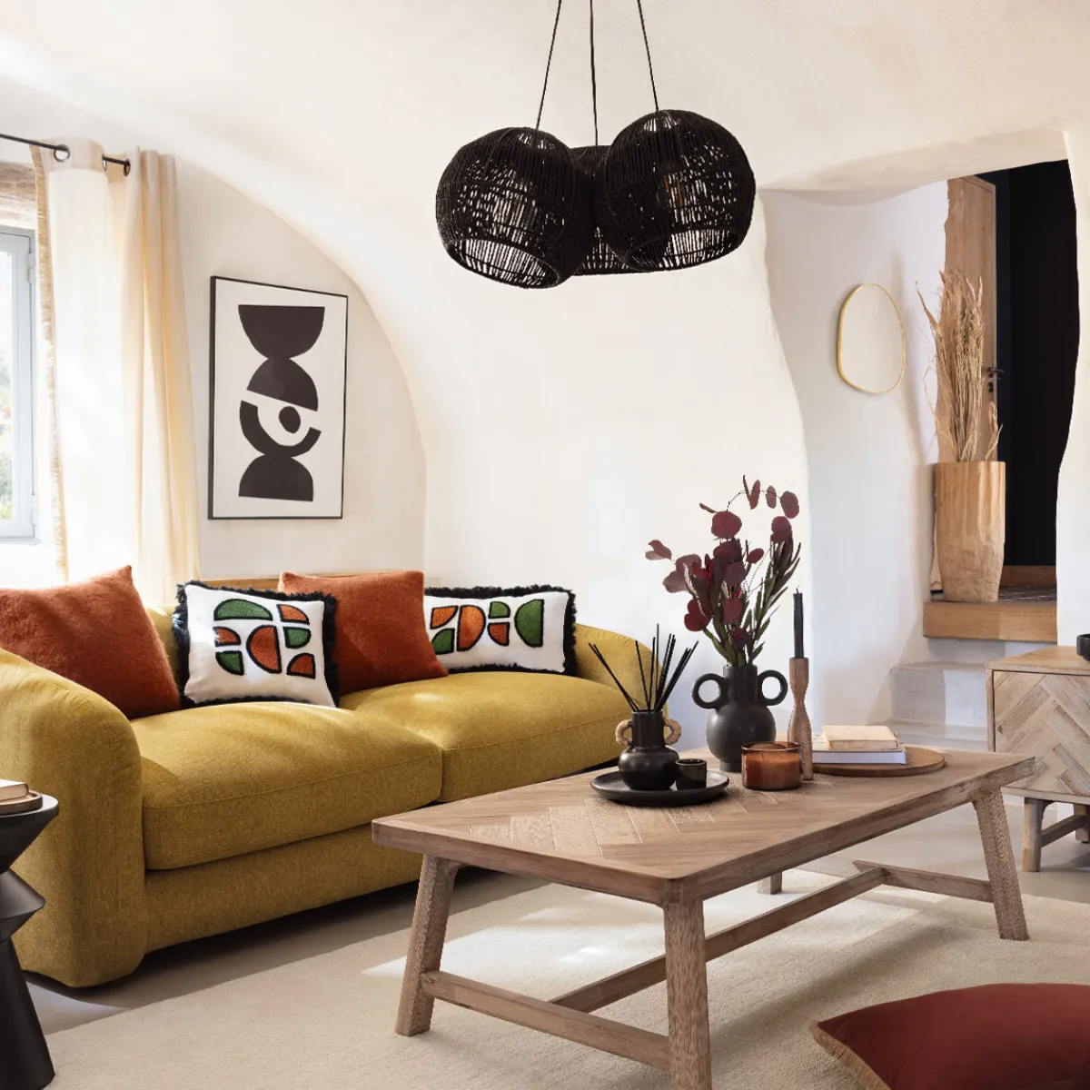 Ajoutez des coussins de sol en jute autour de votre table basse et choisissez quelques plantes artificielles pour compléter!