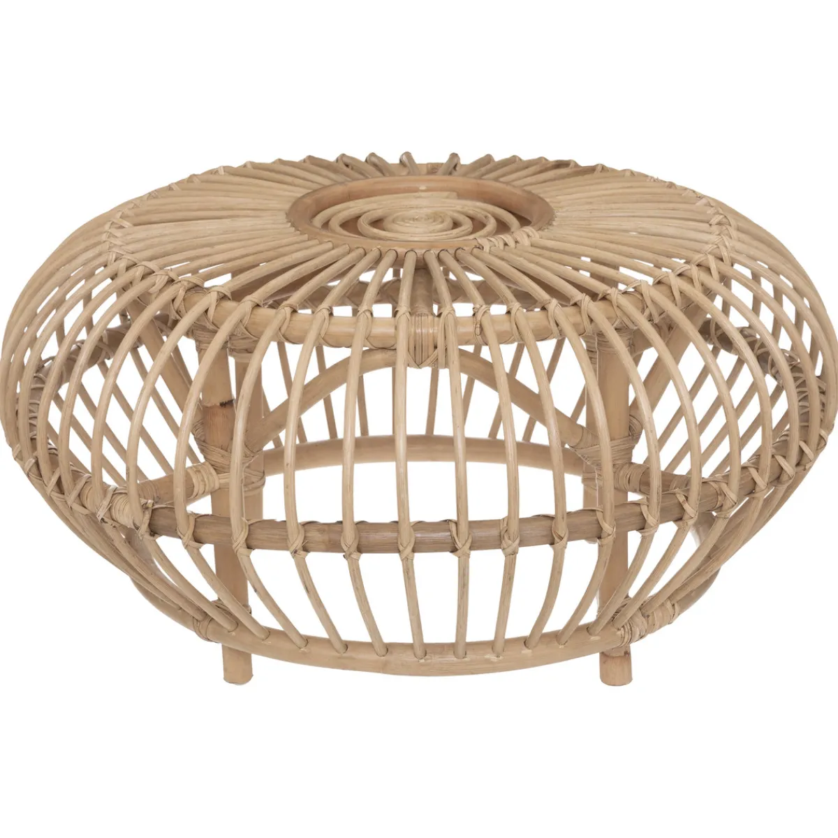 Cette table basse est entièrement en rotin, une matière légère et résistante. Ses jolies courbes et son aspect artisanal lui donnent beaucoup de douceur. Le design original et élégant de ce meuble invite à l’évasion depuis la maison.