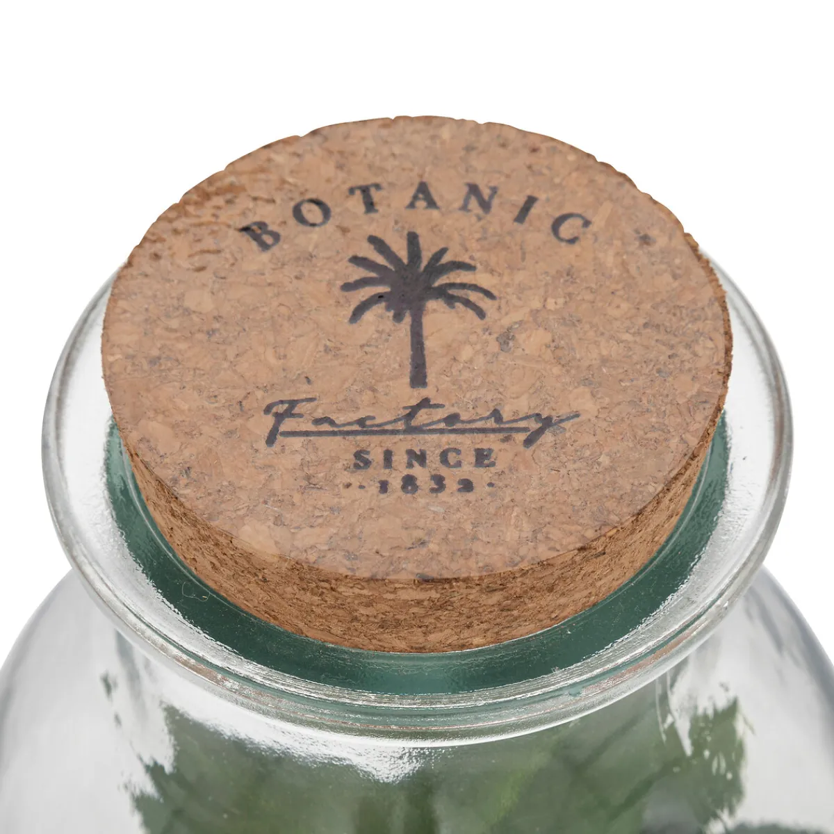 D’une taille compacte, le terrarium « Bota » se présente comme un flacon en verre transparent avec un bouchon en liège. Il contient une petite plante artificielle, de la fausse mousse végétale et des cailloux. Très réaliste, cet objet déco ne demande pourtant aucun arrosage.
