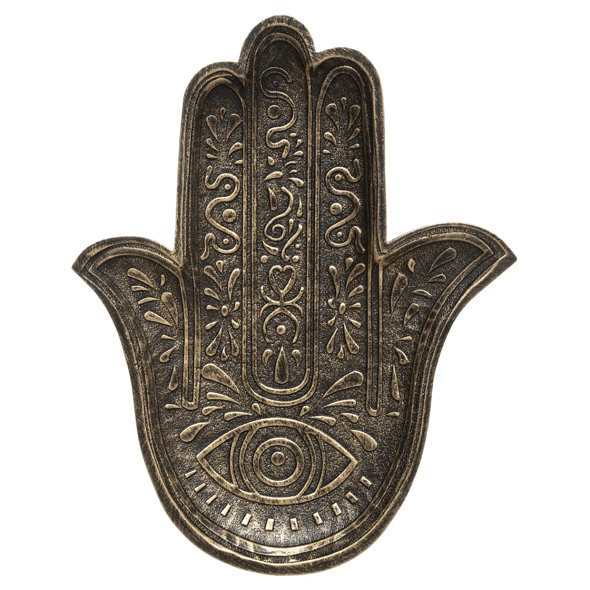Ce joli vide-poche en forme de main de Fatma vous fera aussitôt voyager depuis chez vous. Avec ses motifs en relief et son aspect artisanal, cet objet déco apportera une touche exotique à votre intérieur.